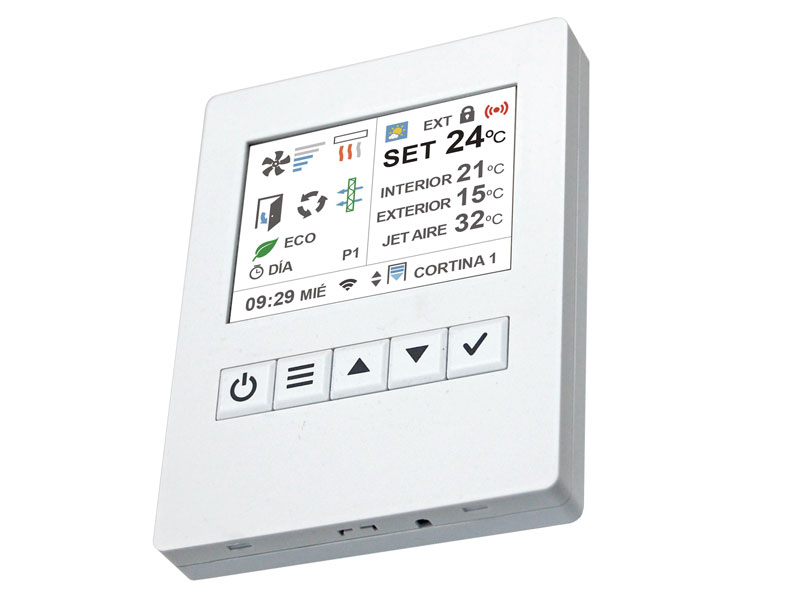 This controller is suitable for the Mini Optima, Recessed Optima, Aris, TOP, DAM, Industrial Windbox, Invisair, Kool, Maxwell, Recessed Windbox, Rotowind, Rund, Smart, Windbox and Zen air curtain.