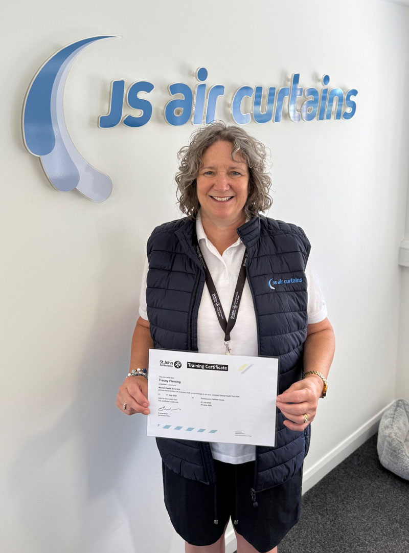 At JS Air Curtains, we’ve always believed that work should be a place where people feel happy, healthy, and supported. From our dog-friendly office to our team walks in the fields, looking after each other is part of who we are. Now, with Tracey previously qualified with a degree in psychology and stepping into this new role, we’ve taken another positive step in making sure everyone feels safe to speak up and cared for if things ever get tough.